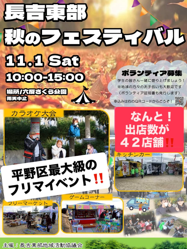 11月1日(土)の10:00~15:00に行われます『長吉東部 秋のフェスティバル』に当事務所も出店し、【無料相談会ブース】を設置いたします!